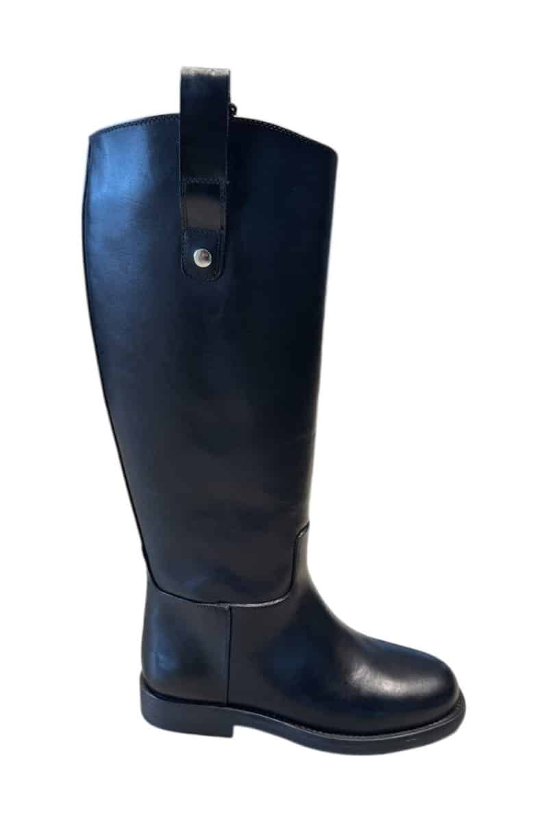 En super cool støvle med højt skaft, rund snude og spændedetalje foroven, som gør det let lige at hoppe i dem. Støvlerne har et “ridestøvle look” hvilket vi kommer til at se meget af i denne sæson! De kan både styles til et par stramme jeans ell